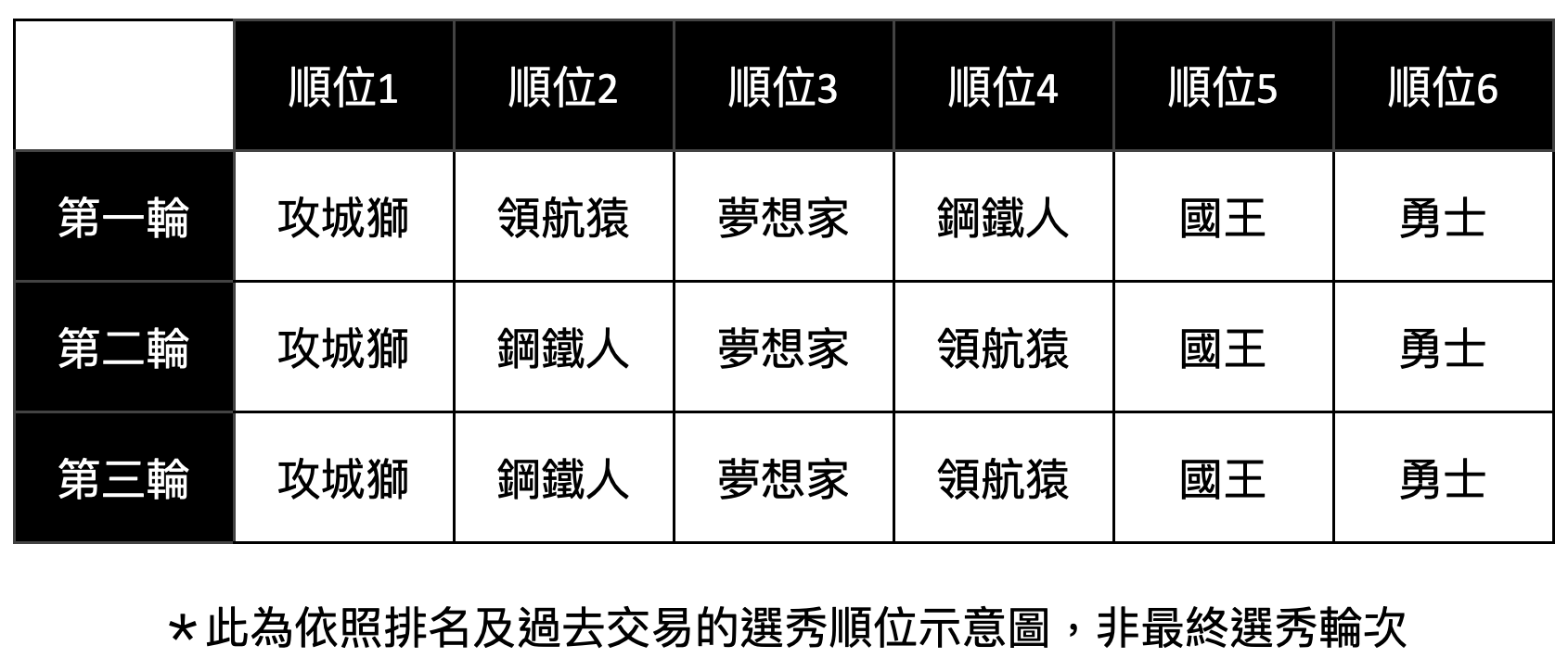 選秀順序: